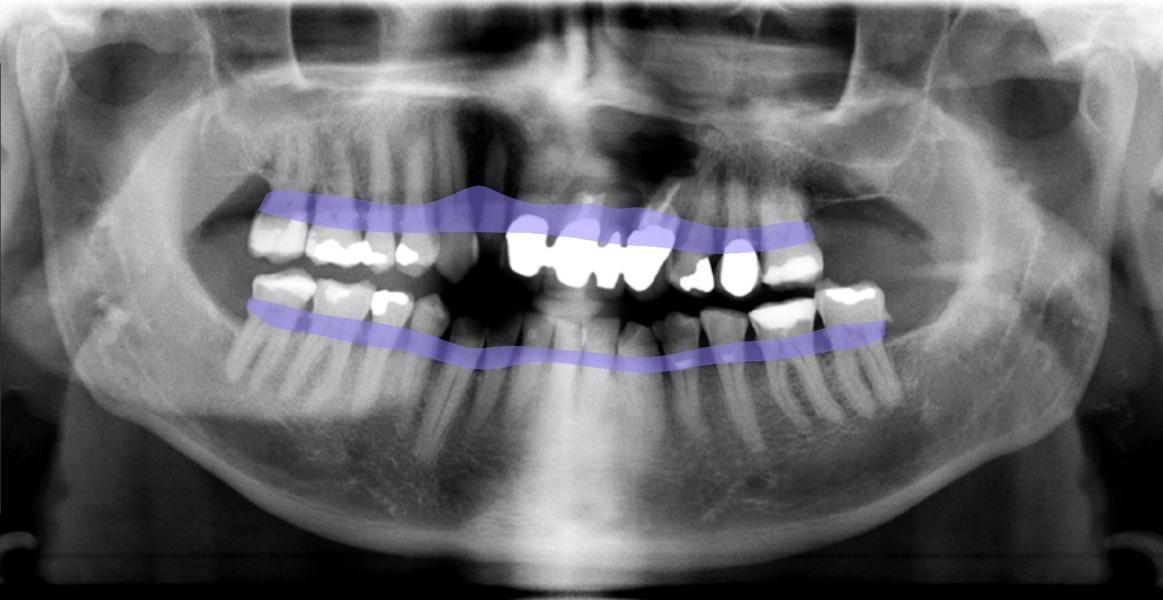 Das „OPG“ wird bei der Aufnahme direkt in der EDV gespeichert und bietet uns einen Überblick über den gesamten Kieferbereich.Es bietet sehr viele diagnostische Möglichkeiten der Krankheitserkennung und auch der Implantatplanung.